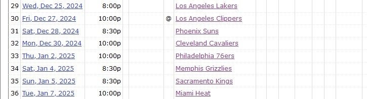 接下來勇士又將迎來一波艱苦賽程,他們首先在圣誕大戰(zhàn)面對湖人,然后再戰(zhàn)快船。接下來他們將依次面對太陽、騎士、76人、灰熊、國王和熱火。