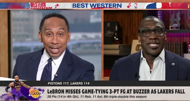 比賽最后一攻,詹姆斯投丟了絕平三分。對此名嘴A-史密斯在《First Take》節(jié)目中表示:“喬丹能投進(jìn)這球。”