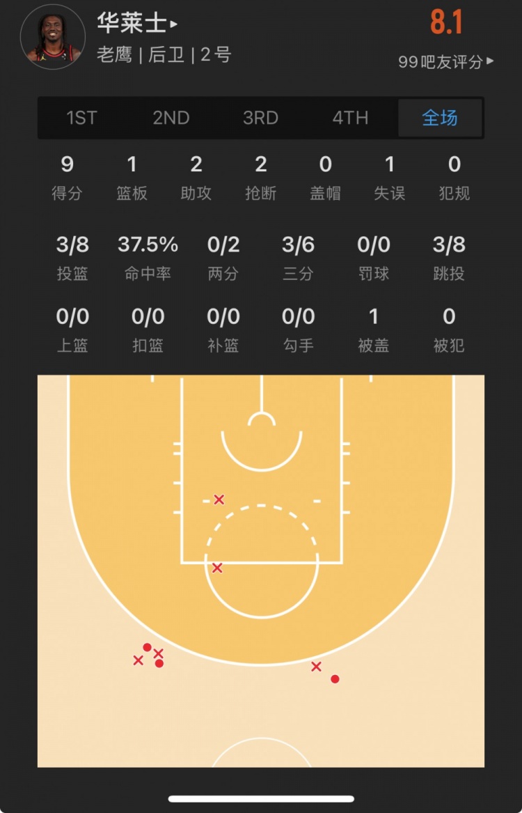 老鷹落選秀 基頓-華萊士 登場(chǎng)15.6分鐘
