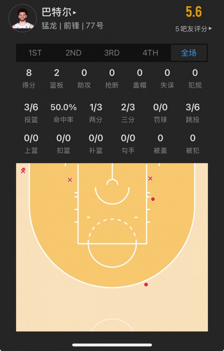 猛龍落選秀 賈米森-巴特爾 登場(chǎng)8.7分鐘