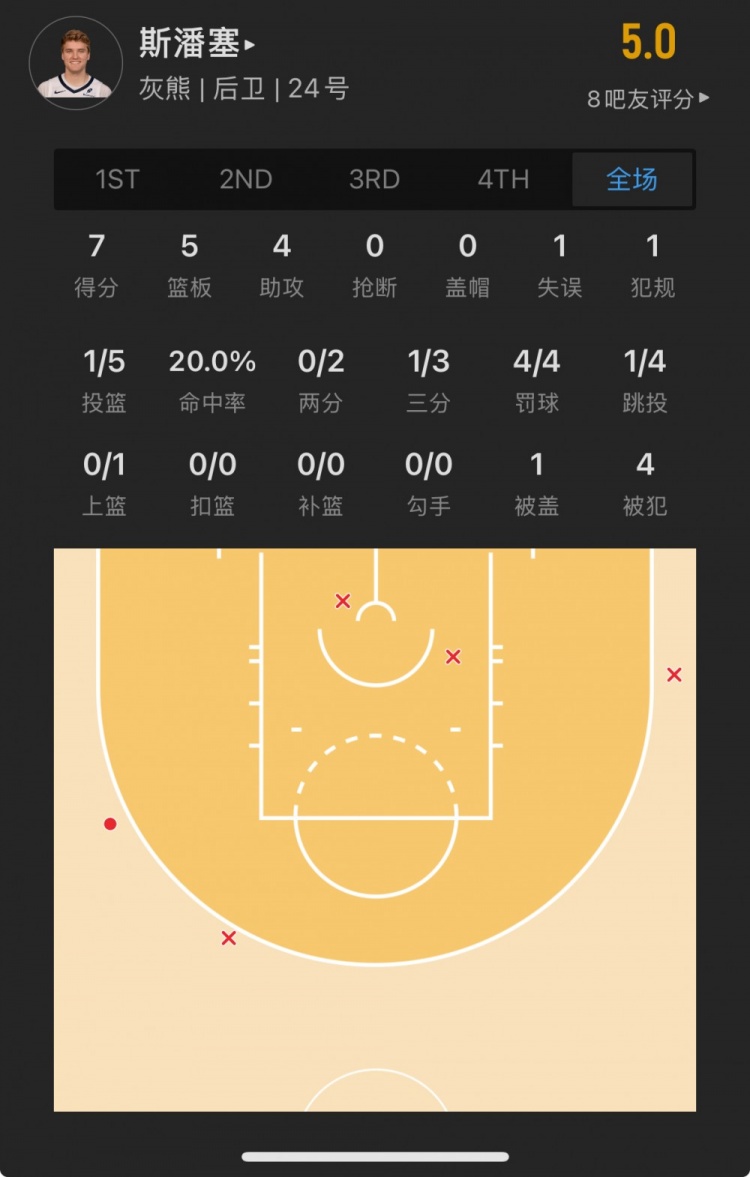 灰熊53號(hào)秀 卡梅隆-斯潘塞 登場(chǎng)22.3分鐘