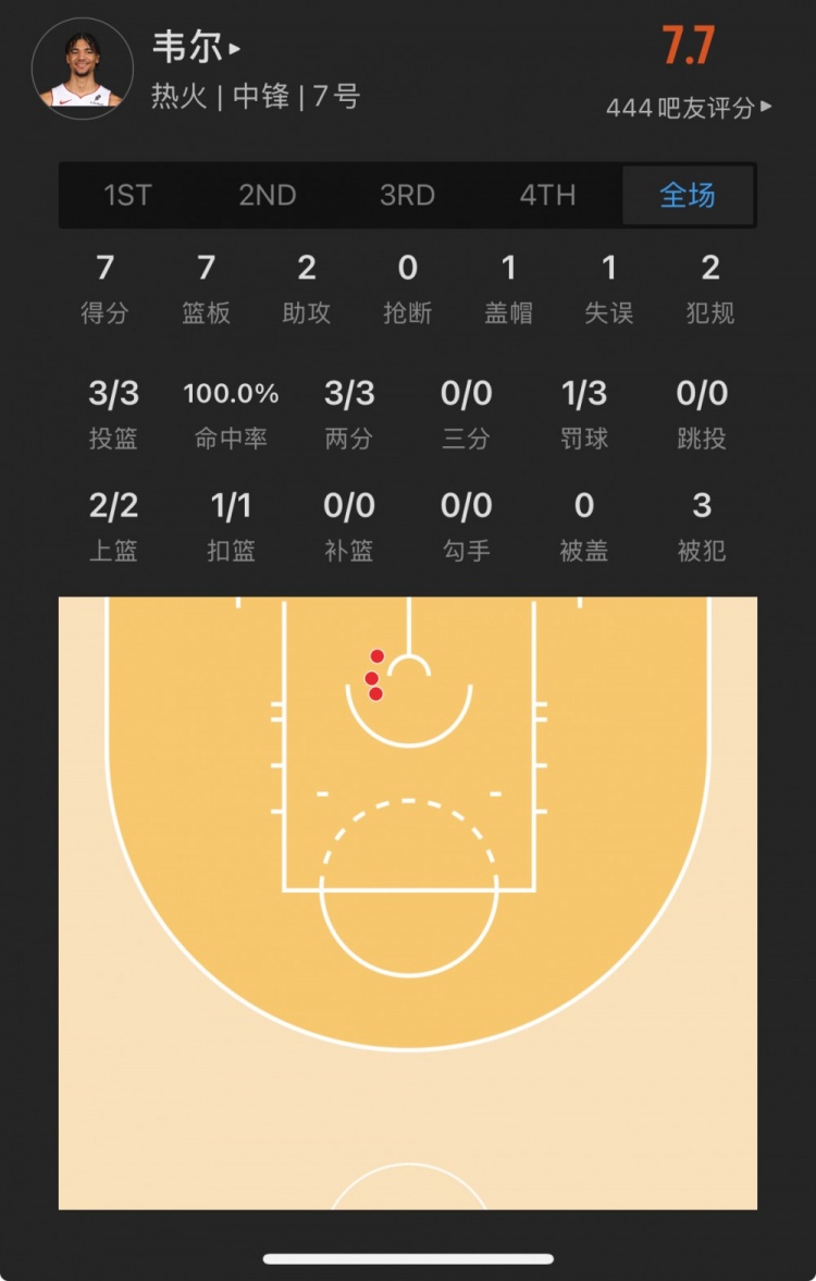 熱火15號(hào)秀 克雷爾-韋爾 登場(chǎng)13.7分鐘