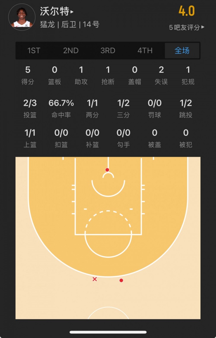 猛龍19號(hào)秀 賈科比-沃爾特 登場(chǎng)16.2分鐘