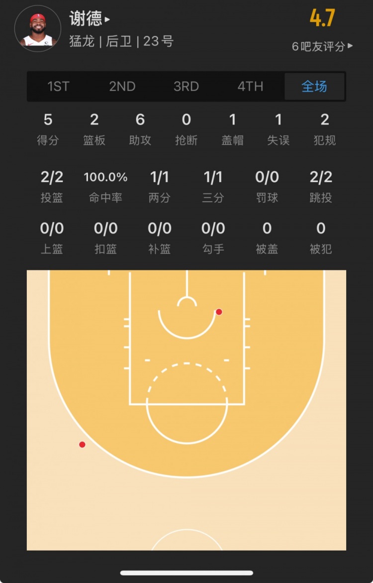 猛龍45號(hào)秀 賈馬爾-謝德 登場(chǎng)25.1分鐘