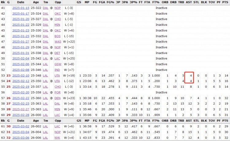 據(jù)統(tǒng)計(jì),3次助攻是東契奇湖人生涯至今的單場(chǎng)最低值,此前他曾2次送出4記助攻。