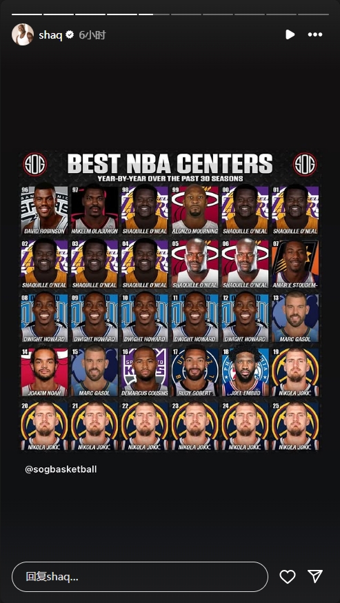 發(fā)布時(shí)間:2025年03月13日 00:14點(diǎn)擊:欄目:籃球新聞 除特別注明外,本站所有內(nèi)容均為24直播網(wǎng)整理排版,轉(zhuǎn)載請(qǐng)注明出處:奧尼爾曬過去30年最佳中鋒:自己9年8度上榜 約基奇統(tǒng)治最近7年 本文標(biāo)簽: 籃球 nba 湖人 奧尼爾 掘金 約基奇