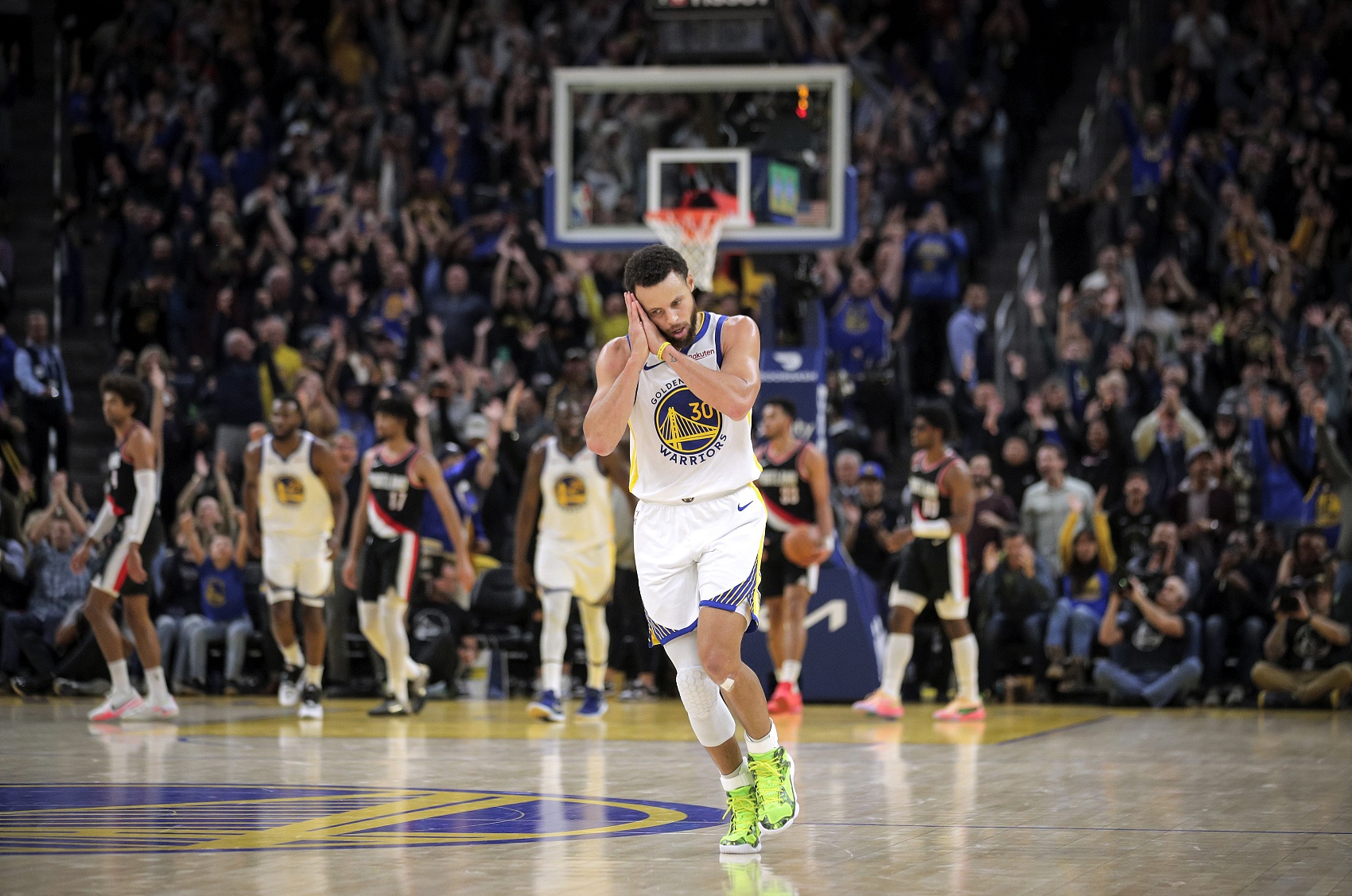談到自己的慶祝動作“晚安安”的來由,庫里說道:“2022年季后賽對陣掘金的G3,當時我想的是,‘讓我來吧。我現(xiàn)在就去讓他們安靜下來。’我對伊戈達拉說過這句話。其實我只是隨口一說,并沒有做任何手勢。然后我上籃得分,第一次快速地說了句‘晚安’,從此這就演化成了我的標志性慶祝動作?!?/p>
