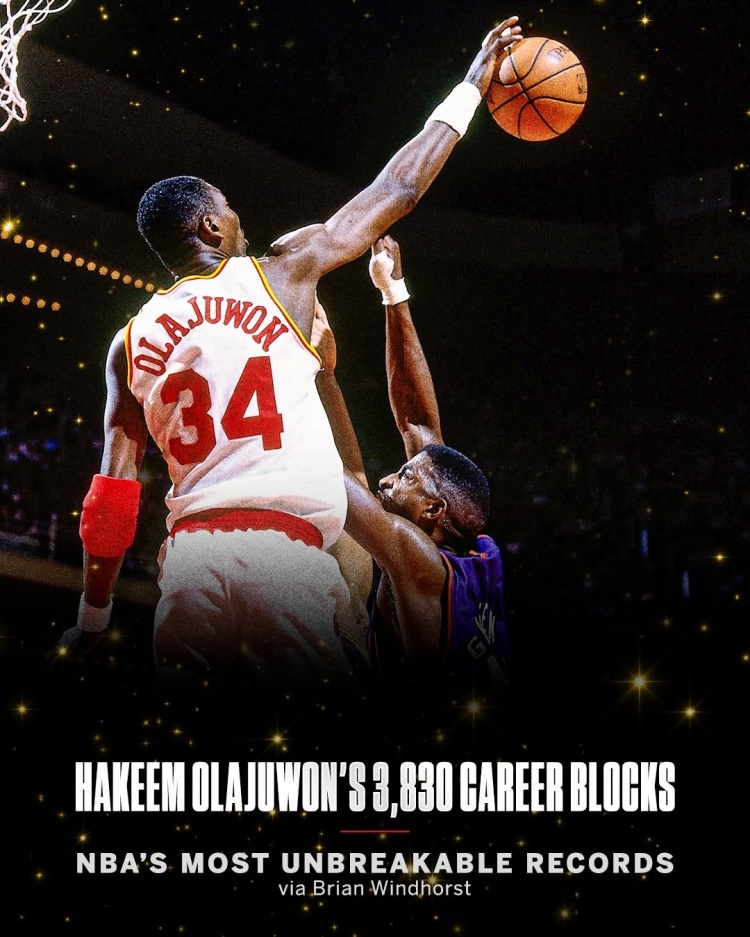 哈基姆-奧拉朱旺生涯3830記蓋帽