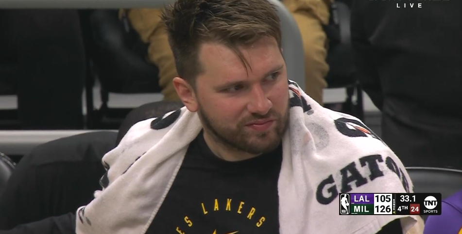 湖人投降 板凳席的東契奇表情有些耐人尋味