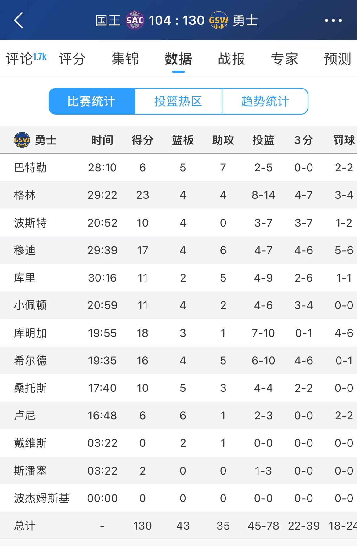 發(fā)布時間:2025年03月15日 00:17點擊:欄目:籃球新聞 03月14日訊 勇士今日全隊開花輕取國王。本場比賽,今年工資4880萬的巴特勒只拿到6分,工資5581萬的庫里只拿到11分,倆人工資合起來一個億出頭,合砍17分,還不足球隊全場得分130的零頭。 除特別注明外,本站所有內容均為24直播網整理排版,轉載請注明出處:包贏不包C庫里巴特勒年薪一個億 今天“合砍”17分 本文標簽: 籃球 nba 勇士 庫里 巴特勒