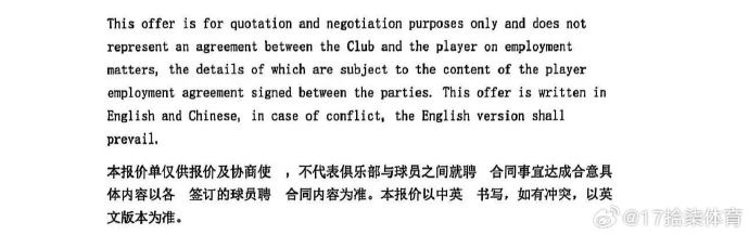 二 多家俱樂部對(duì)哈雷爾感興趣并進(jìn)行了談判,其間另一家中方經(jīng)紀(jì)公司在浙江稠州銀行俱樂部與哈雷爾的談判過程中簽訂了一份報(bào)價(jià)單,其中明確約定“該報(bào)價(jià)單僅供報(bào)價(jià)和協(xié)商使用,不代表球員與俱樂部完成聘用合同簽約?!薄@也是浙江稠州銀行俱樂部多次公告中含糊其辭提及的“簽約”。最后,在多家俱樂部中談判協(xié)商中球員哈雷爾于二月十日選擇了簽約新疆廣匯俱樂部,三方按中國(guó)籃協(xié)和CBA公司要求簽訂了標(biāo)準(zhǔn)合同并在中國(guó)籃協(xié)完成了經(jīng)紀(jì)人備案。