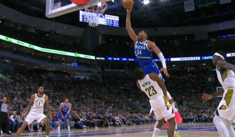 視覺效果炸裂!字母哥絲滑轉身單臂隔扣內史密斯 可惜吹進攻犯規(guī)