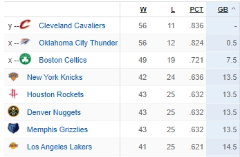 今日騎士輸球,兩隊(duì)的勝場(chǎng)差僅剩0.5了。