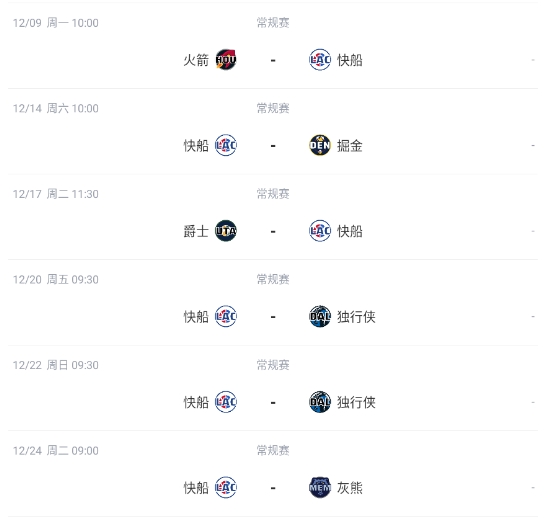快船目前以14勝10負(fù)位列西部第七,他們?cè)谑フQ節(jié)前的賽程如下:
