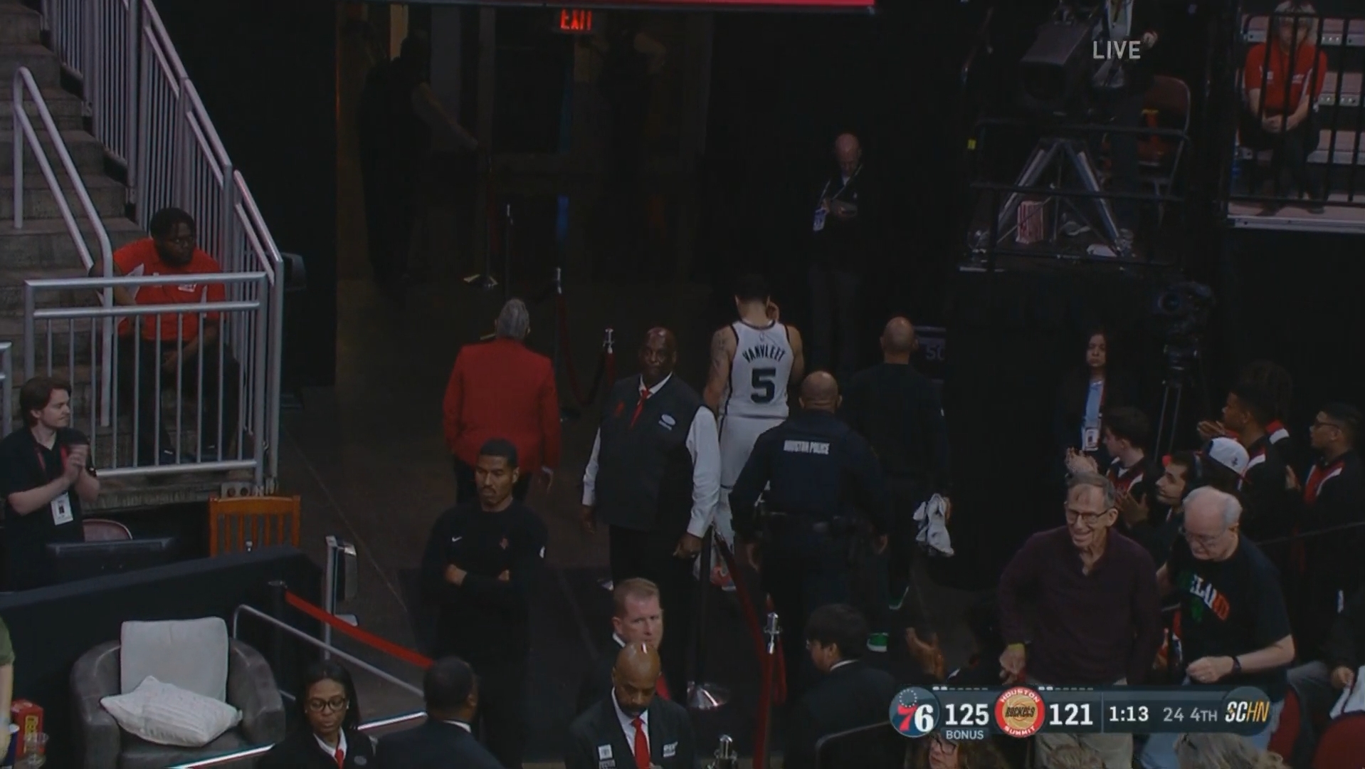 范弗里特三分出手認(rèn)為自己被犯規(guī) 裁判沒吹后他對(duì)布里塞特犯規(guī)