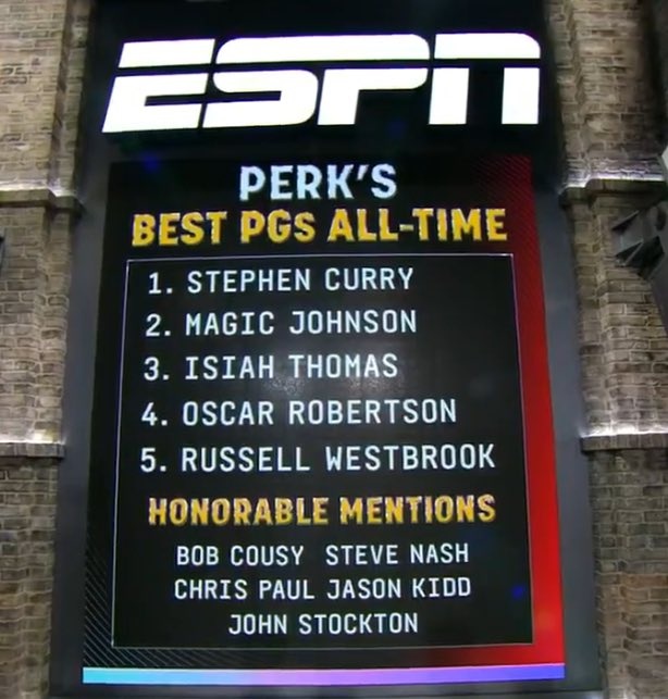 3月20日訊 近日,評(píng)論員帕金斯在節(jié)目上列出了他心目中歷史前5的控衛(wèi)。