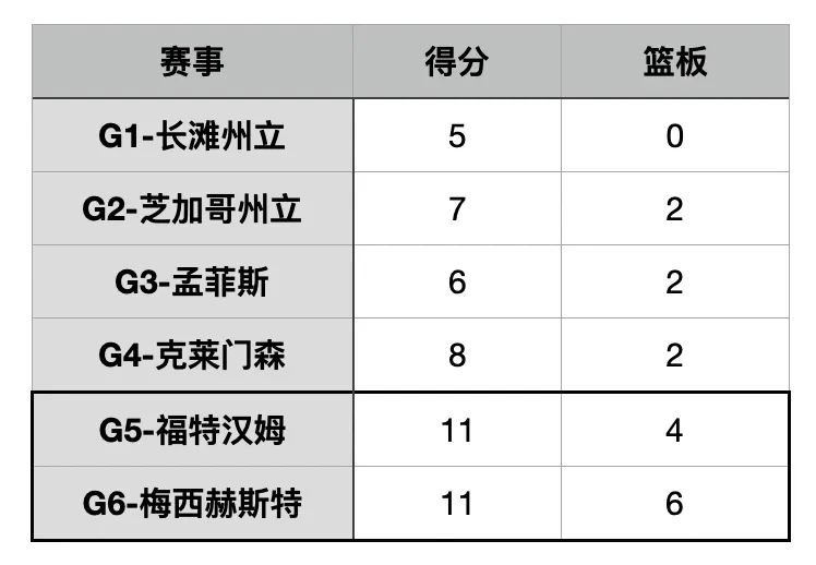 所以當(dāng)我們看到他NCAA連場得分上雙的消息,自然會相當(dāng)興奮。賽季初前4場比賽打下來,王俊杰場均6.5分1.5籃板,每場得分都是個位數(shù),比賽里也基本上是個小透明,而經(jīng)過對陣福特漢姆大學(xué)和梅西赫斯特大學(xué)的連場上雙之后,王俊杰的個人數(shù)據(jù)來到了場均8分2.7個籃板,同時(shí)我們也應(yīng)該重新審視這名球員的存在感。