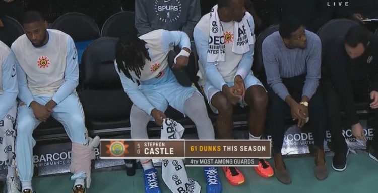 轉(zhuǎn)播方曬出一組數(shù)據(jù),馬刺新秀卡斯?fàn)柋举惣局两褚淹瓿?1次扣籃,這一數(shù)據(jù)排名聯(lián)盟所有后衛(wèi)的第4位。