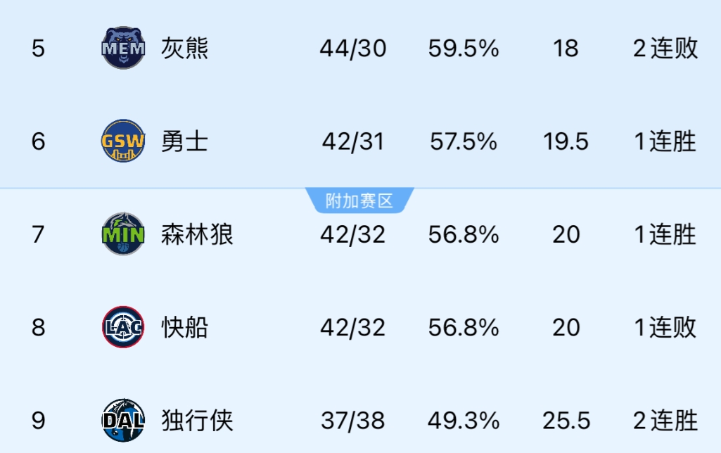 勇士升至西部第6,森林狼升至西部第7!另外勇士(VS馬刺)和森林狼(VS活塞)今日都有比賽,兩隊(duì)都有機(jī)會(huì)在今天穩(wěn)住排名。