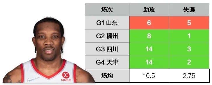 如果說第一場客戰(zhàn)山東的6助攻5失誤,有布萊德索調整狀態(tài)和磨合的原因,而后續(xù)三場36助攻僅6失誤的大師級發(fā)揮,則可以看出布萊德索控場的能力。