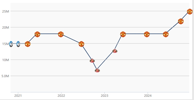 12月16日訊 今日德國轉(zhuǎn)會市場更新英超球員身價,其中曼聯(lián)邊鋒阿瑪?shù)?迪亞洛身價上漲300萬歐,至2500萬歐。