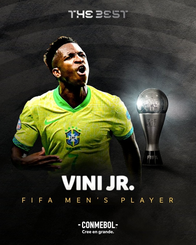 南美足聯(lián)官方社媒也特意送上祝賀:“南美洲的驕傲!維尼修斯是2024年世界足球先生!恭喜!”
