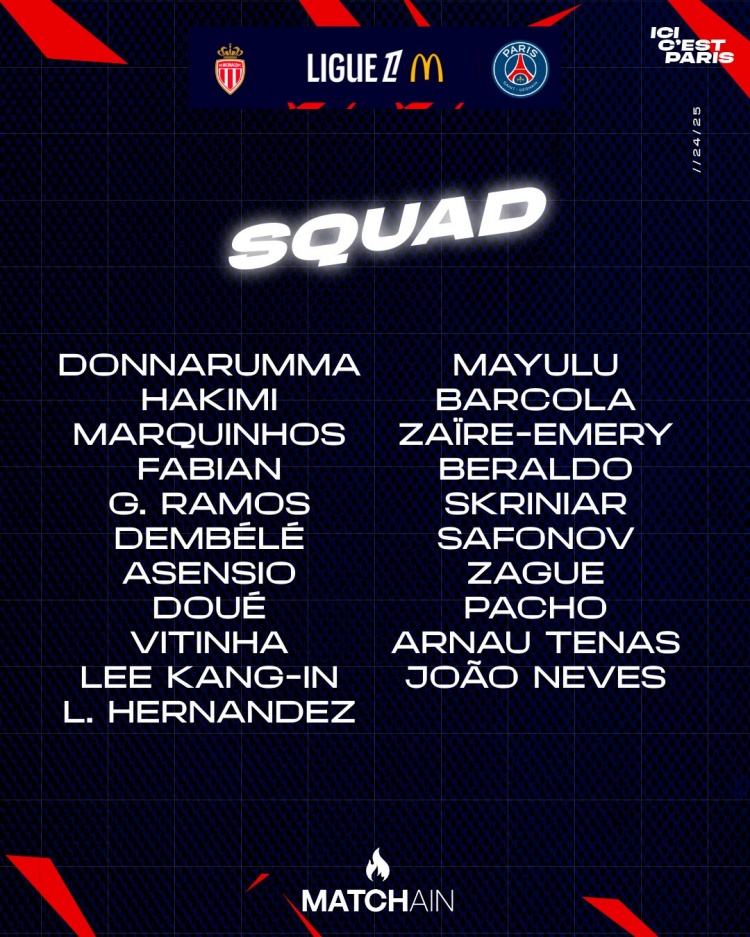 除特別注明外,本站所有內容均為24直播網(wǎng)整理排版,轉載請注明出處:巴黎戰(zhàn)摩納哥名單:什克里尼亞爾回歸,努諾-門德斯、穆阿尼缺席