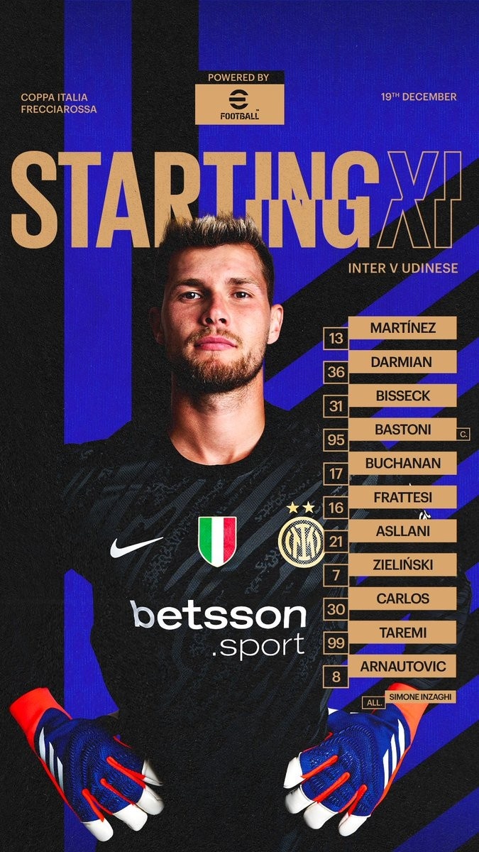 12月20日訊 國米將在本輪意大利杯對陣烏迪內(nèi)斯,賽前首發(fā)已經(jīng)公布。今夏新援何塞普-馬丁內(nèi)斯迎來國米生涯首秀。
