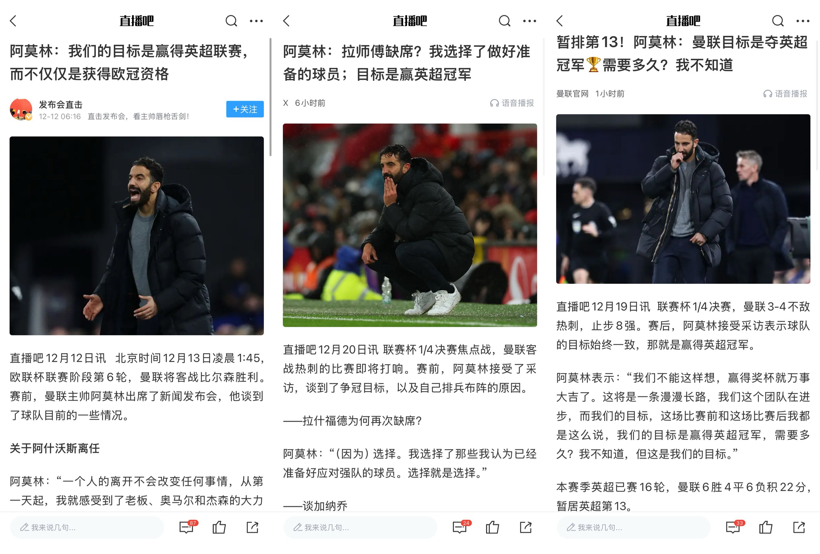 出任曼聯(lián)主帥后,阿莫林多次在采訪(fǎng)中表示,曼聯(lián)的目標(biāo)是贏得英超冠軍。