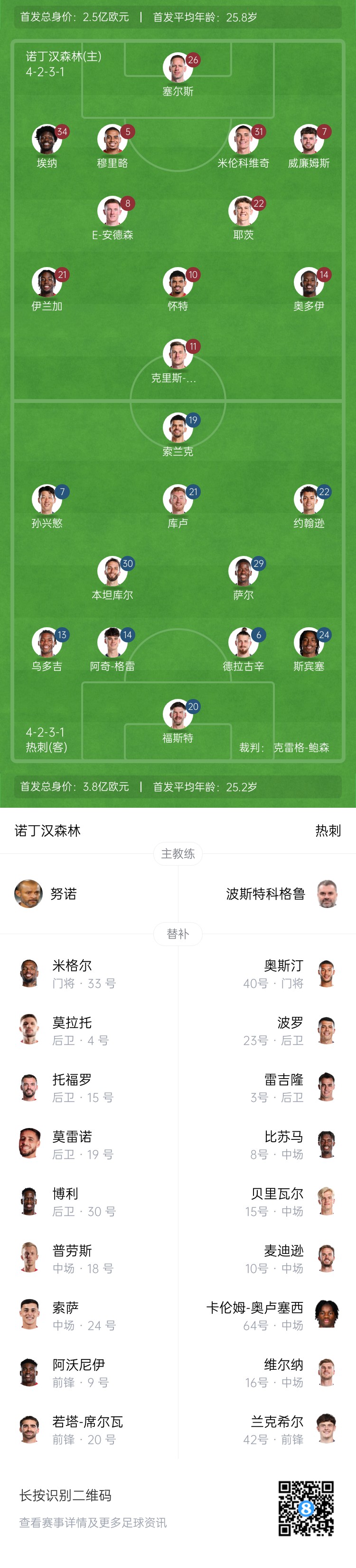 除特別注明外,本站所有內(nèi)容均為24直播網(wǎng)整理排版,轉(zhuǎn)載請注明出處:熱刺客戰(zhàn)諾丁漢森林首發(fā):本坦庫爾解禁復(fù)出,孫興慜、索蘭克先發(fā)