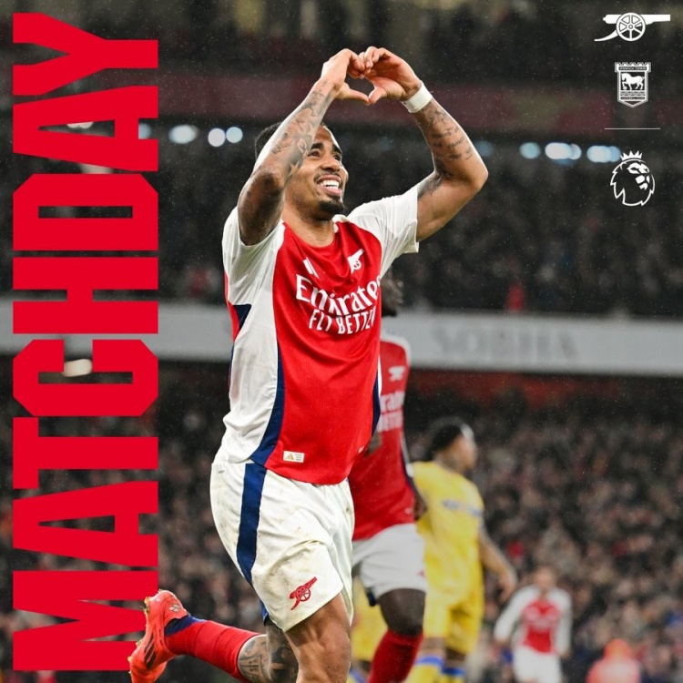 12月27日訊 阿森納發(fā)布海報預(yù)熱同伊普斯維奇的比賽,熱蘇斯出鏡。