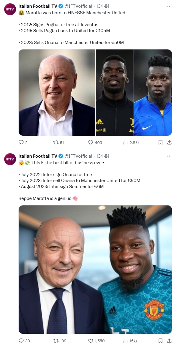 除特別注明外,本站所有內(nèi)容均為24直播網(wǎng)整理排版,轉(zhuǎn)載請注明出處:IFTV:馬洛塔生來拿捏曼聯(lián)免簽奧納納博格巴,2人合計賣1.5億
