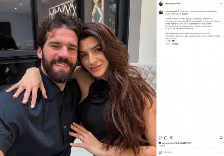 12月28日訊 利物浦門將阿利森今天在Instagram發(fā)文,曬出妻子的生日照,并發(fā)文向她表白。