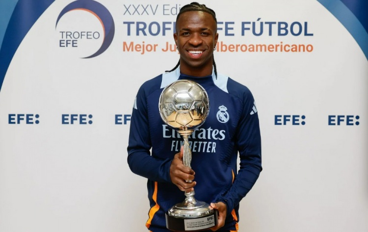 12月31日訊 據(jù)皇馬俱樂部官網(wǎng)的消息,2024年伊比利亞美洲最佳球員評選結(jié)果出爐,皇馬邊鋒維尼修斯再度當(dāng)選。