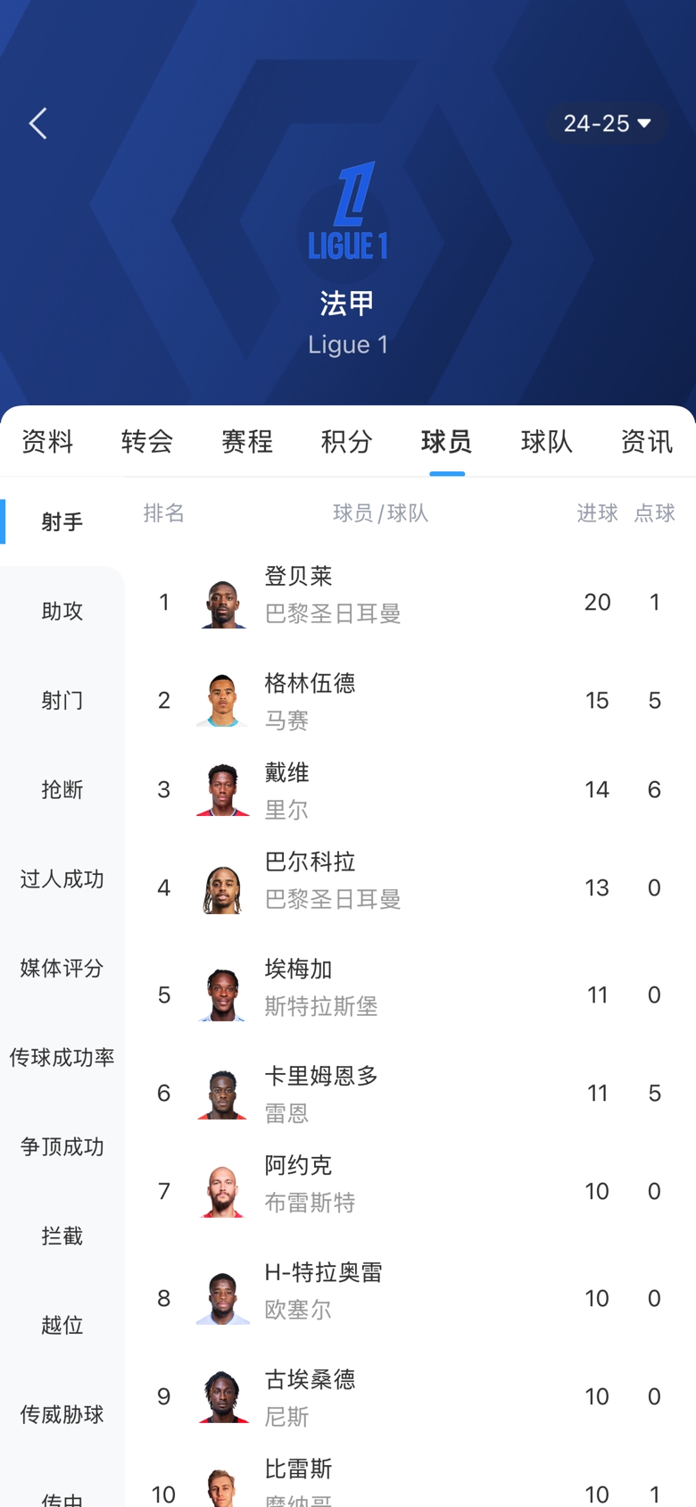 歐洲金靴排名(進(jìn)球×聯(lián)賽系數(shù)=積分):