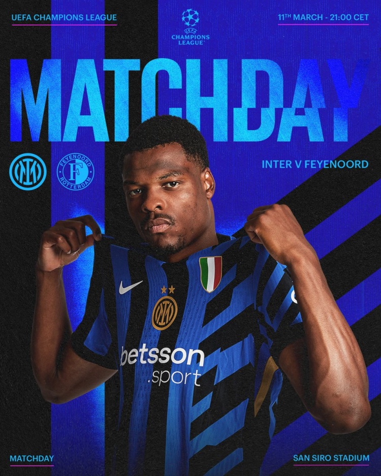 3月11日訊 北京時(shí)間明天凌晨4點(diǎn),國米將在主場對陣費(fèi)耶諾德,這是歐冠1/8決賽的次回合比賽,國米首回合2-0領(lǐng)先對手,國米在賽前發(fā)布了球隊(duì)海報(bào)。