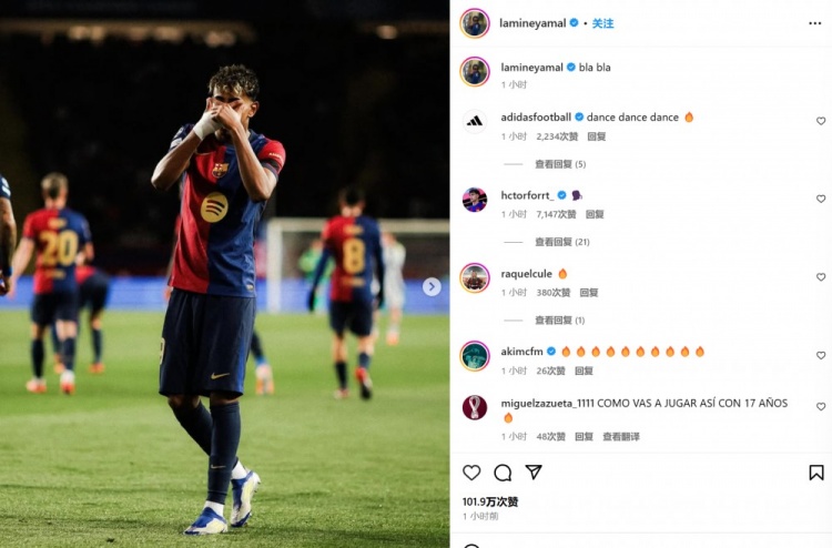 亞馬爾還通過社媒曬出自己的慶祝照,并配文:“bla bla”,似乎是在回擊近期對他的質(zhì)疑。