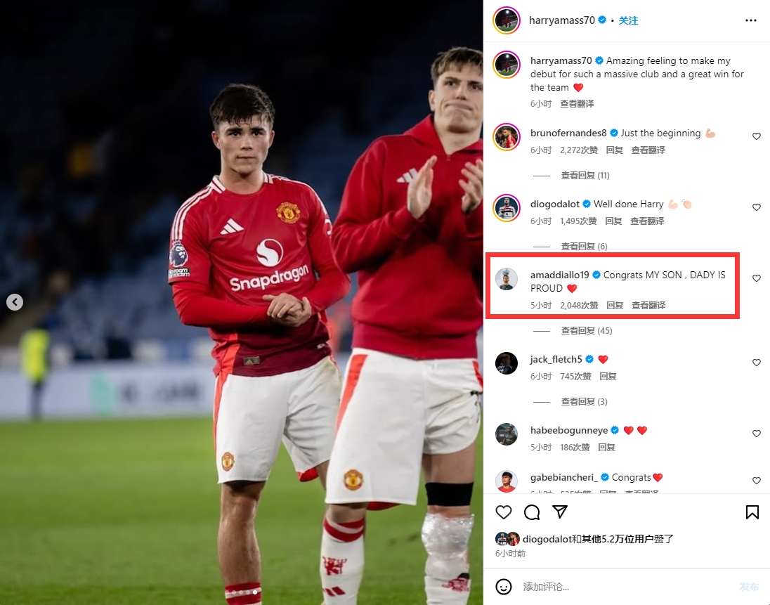 22歲的阿瑪?shù)略u(píng)論:“祝賀我的兒子,爸爸很自豪??”