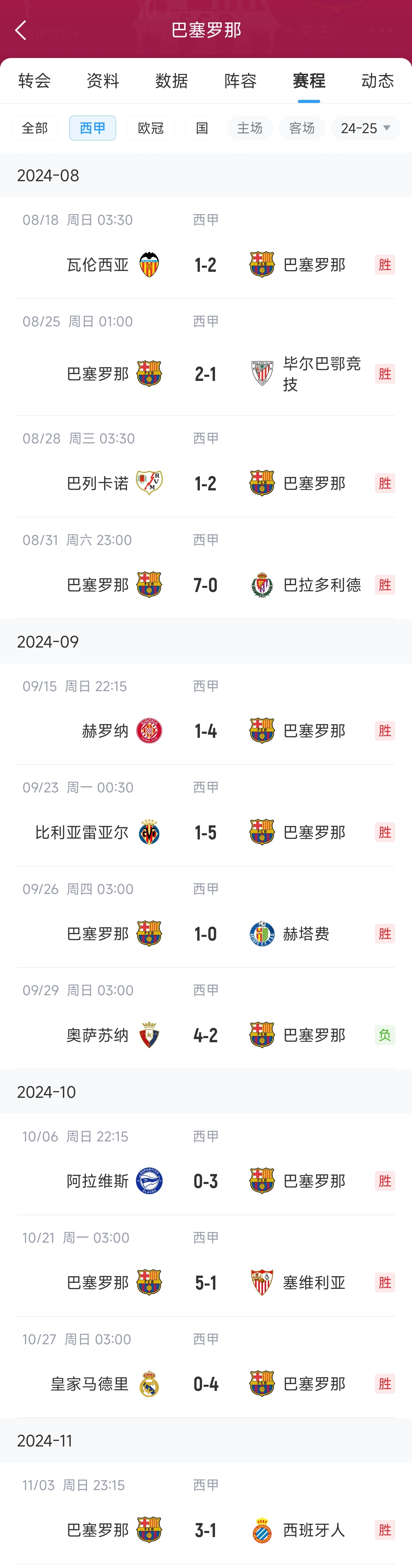 除特別注明外,本站所有內(nèi)容均為24直播網(wǎng)整理排版,轉(zhuǎn)載請(qǐng)注明出處:12輪11勝→8輪1勝僅6分→7輪全勝巴薩本賽季西甲的過山車之旅