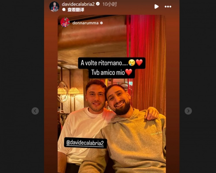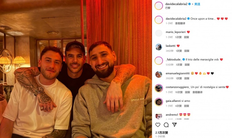 卡拉布里亞曬出了自己和特奧、多納魯馬的合照,并配文:“曾幾何時……??????”