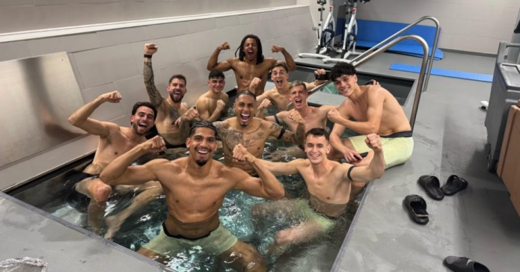 本場(chǎng)比賽的三位進(jìn)球球員均未參與賽后的慶祝活動(dòng),而一些球員則在客隊(duì)更衣室的按摩浴缸里合影留念——阿勞霍、拉菲尼亞、埃里克-加西亞、佩德里、孔德、奧爾莫、福特、加維、卡薩多和伊尼戈-馬丁內(nèi)斯都跳入水中,慶祝這一重要的勝利。