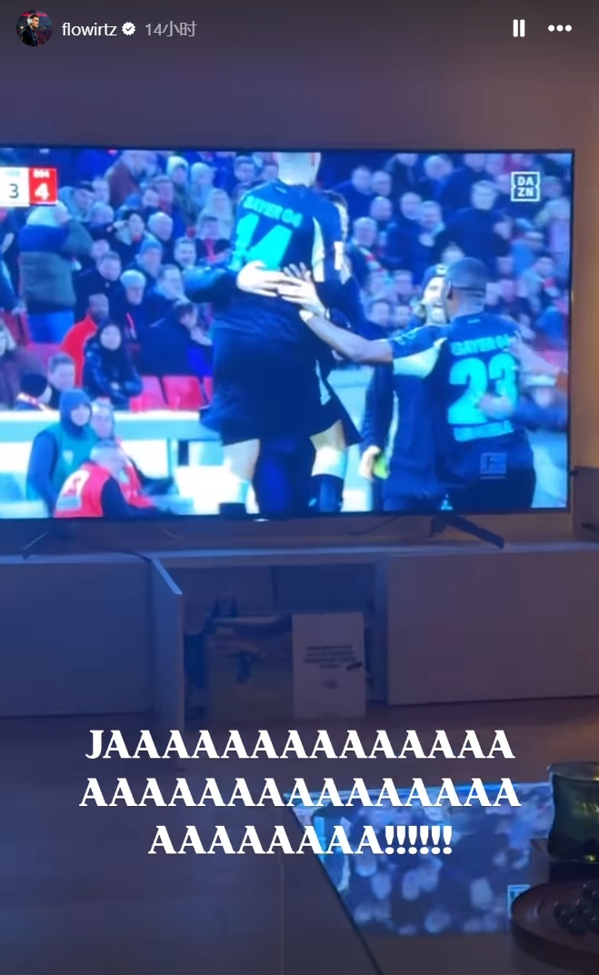 藥廠玄學(xué)再現(xiàn)!目睹絕殺的維爾茨在沙發(fā)上握拳曬照:耶!沖鴨