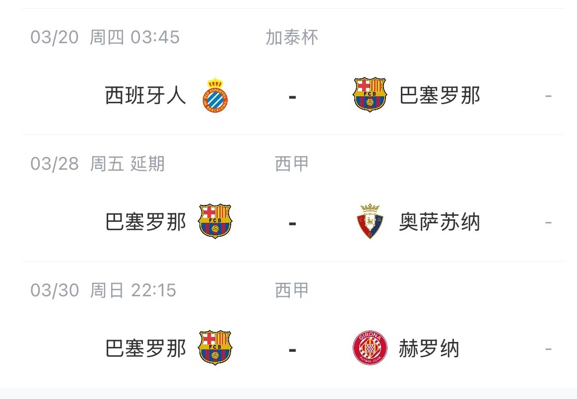 3月27日巴薩vs奧薩蘇納補(bǔ)賽