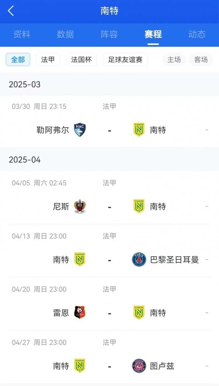 但南特顯然因此而遭受了巨大損失,他們在4月4日vs尼斯之后有近2周時間沒有任何比賽。作為補償,他們原定于20日vs雷恩的德比戰(zhàn)將提前到18日舉行,但此后到27日仍將面臨9天三賽的嚴峻考驗。
