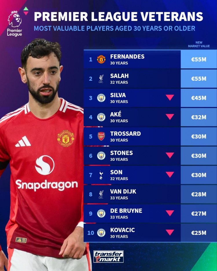 除特別注明外,本站所有內(nèi)容均為24直播網(wǎng)整理排版,轉(zhuǎn)載請(qǐng)注明出處:英超年齡30+球員身價(jià)榜:B費(fèi)、薩拉赫5500萬(wàn)歐居首,B席第三