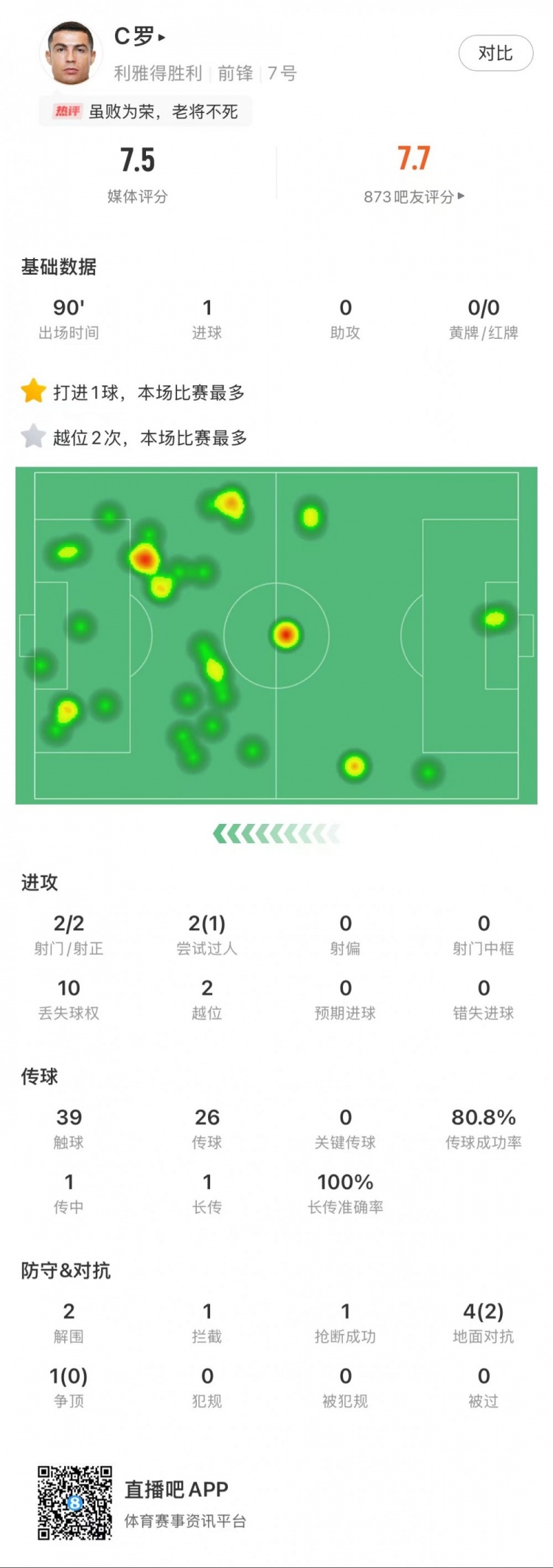 除特別注明外,本站所有內(nèi)容均為24直播網(wǎng)整理排版,轉(zhuǎn)載請注明出處:C羅本場數(shù)據(jù):1粒進球,2次射門均射正,2次越位