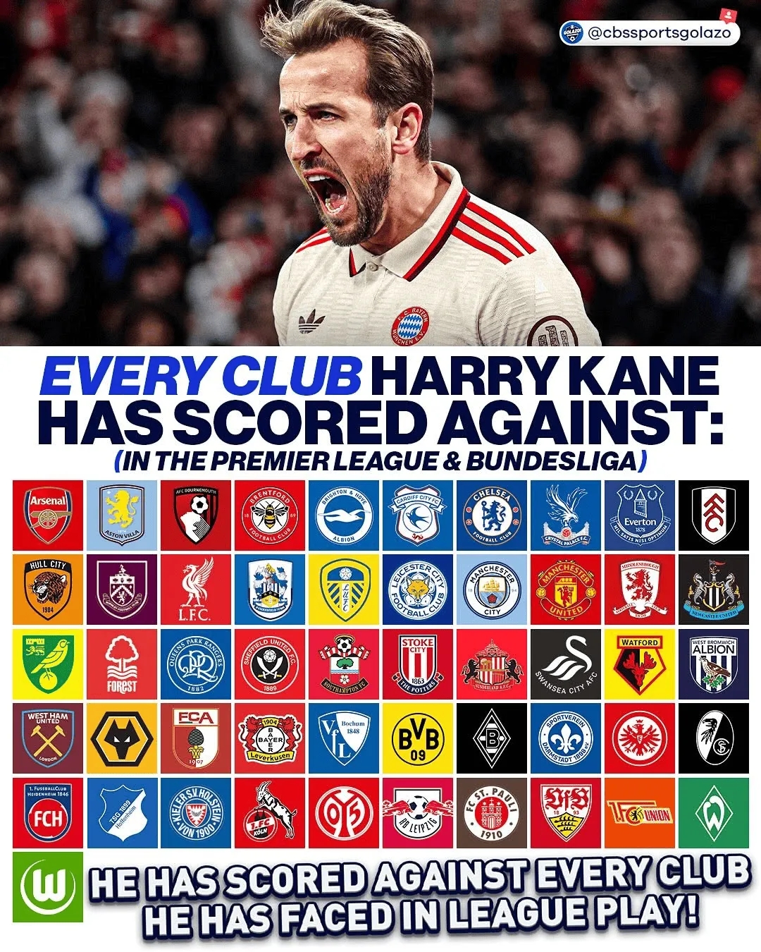 據(jù)媒體數(shù)據(jù)統(tǒng)計(jì),此役過(guò)后,凱恩生涯在德甲、英超面對(duì)過(guò)51家俱樂(lè)部,而且全場(chǎng)完成破門(mén)得分!
