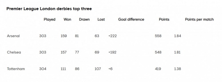 12月7日訊 本周末,切爾西將在英超迎戰(zhàn)熱刺,藍(lán)軍官方曬出了英超倫敦德比前三成績,阿森納排名第一,切爾西排名第二,熱刺排名第三。
