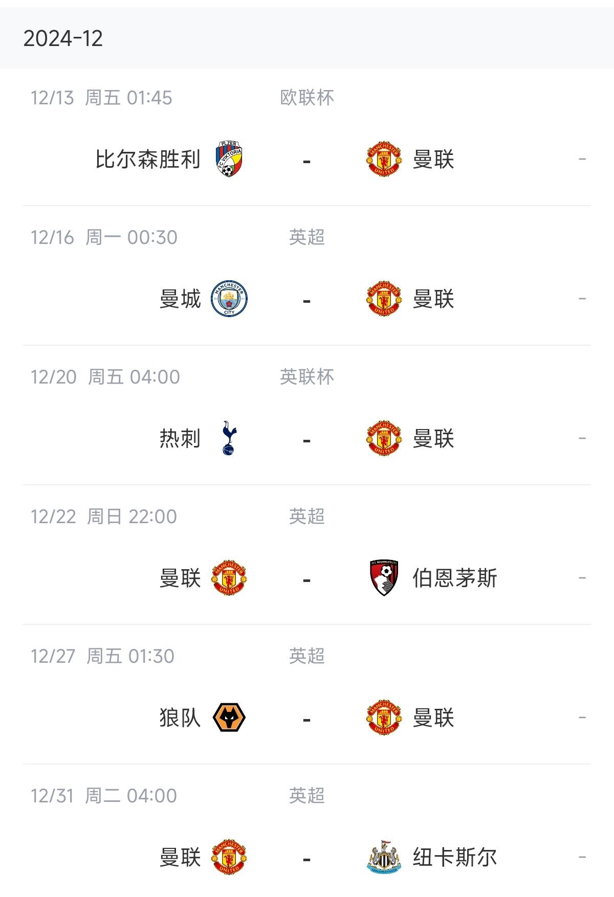 曼聯(lián)未來賽程