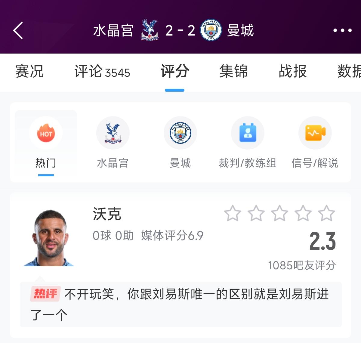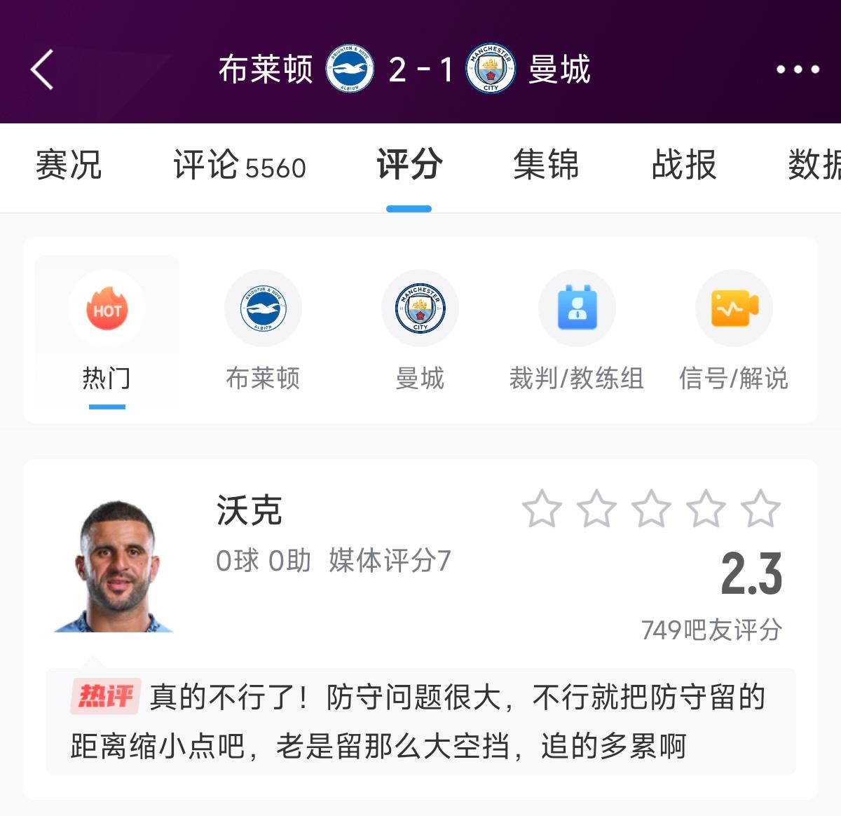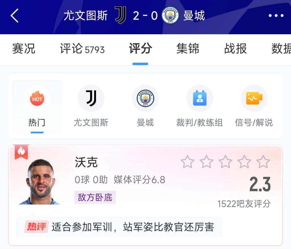 除特別注明外,本站所有內(nèi)容均為24直播網(wǎng)整理排版,轉(zhuǎn)載請注明出處:絕了!老隊長沃克場場被罵評分清一色2分,3-0森林沒首發(fā)獲評6分